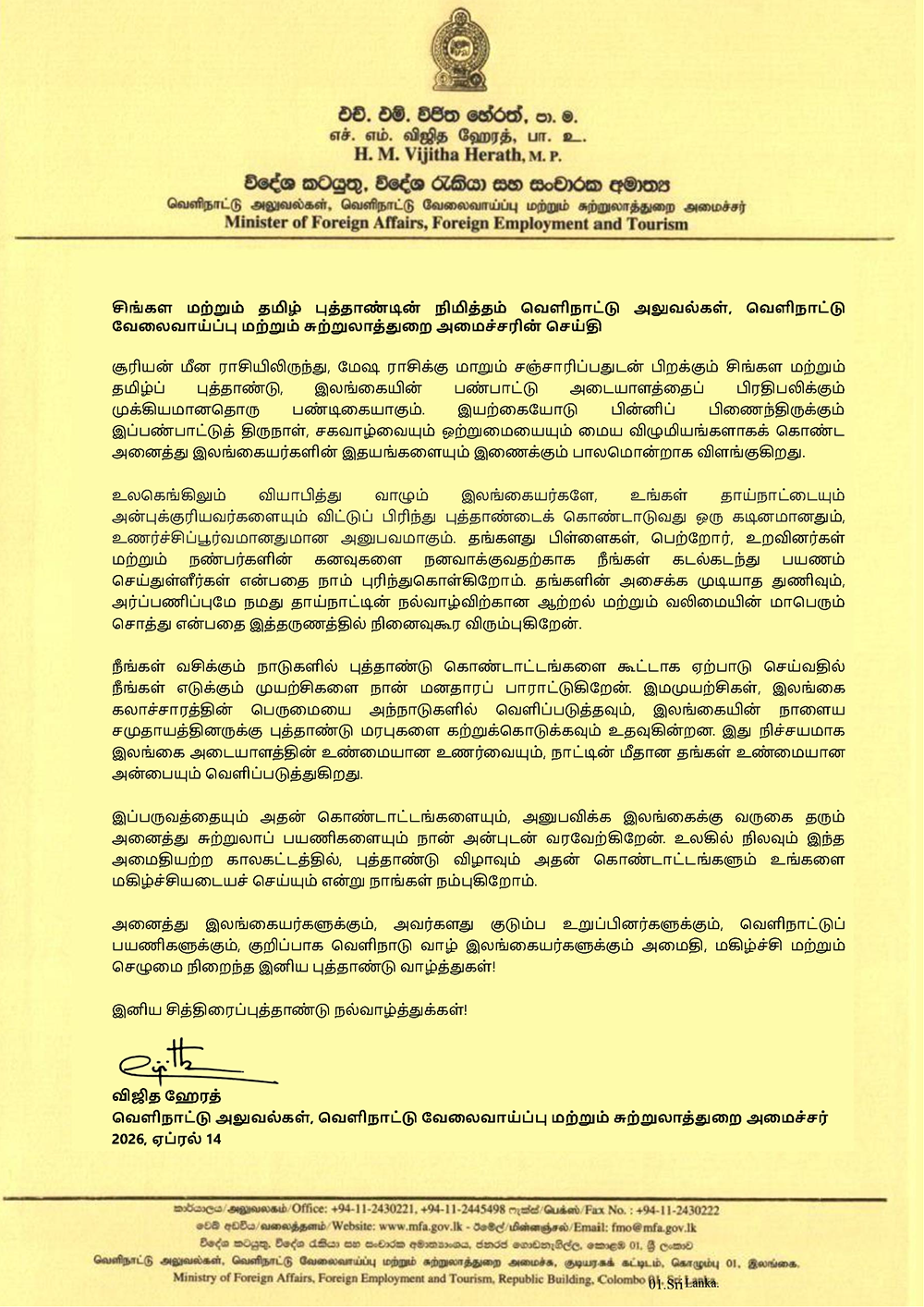 Foreign Minister Vijitha Herath visited New Delhi from 5 – 7 March 2026 to participate in the Raisina Dialogue 2026, at the invitation of the Observer Research Foundation (ORF) and the Ministry of External Affairs of India.