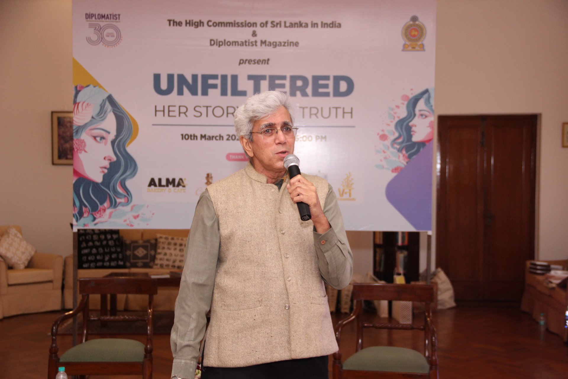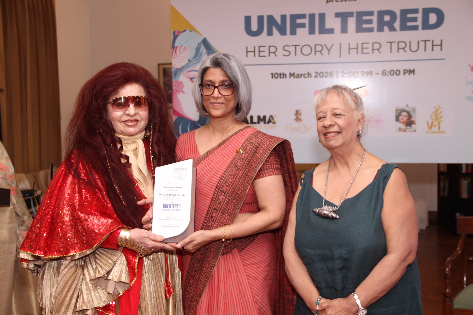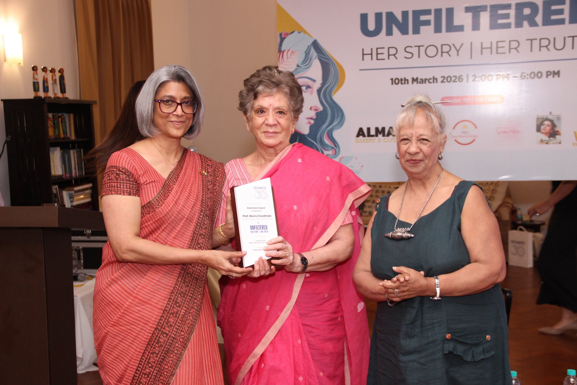 The High Commission of Sri Lanka in New Delhi hosted an International Women’s Day event titled “Unfiltered: Her Story | Her Truth” on 10 March 2026 at the Residence of the High Commissioner, in collaboration with Diplomatist Magazine. Smt. Meenakshi Lekhi, former Minister of State for External Affairs of India, attended the event as Chief Guest. The programme brought together participants from diplomatic, academic, corporate and social sectors for an afternoon of discussion and reflection on women’s experiences, leadership and resilience. While Smt. Meenakshi Lekhi engaged candidly with questions from the audience, the High Commissioner, in her remarks as host, spoke about the importance of women’s leadership, and the need to ensure equal opportunities that allow women to participate fully in shaping societies and institutions. The programme featured a series of fireside conversations under themes such as “Her Firsts”, “What Women Wish Men Knew”, “Failure, Not Success”, and “Letters to Your Younger Selves”. Speakers and participants shared personal experiences and reflections on leadership, overcoming challenges, professional journey and resilience. Speakers included Amb. Veena Sikri (former High Commissioner of India to Bangladesh), Prof. (Dr.) Swasti Rao (Associate Professor and Associate Dean, Global Initiatives, Jindal School of International Affairs, OP Jindal University), Ms. Samia Israt Ronee (Minister, Bangladesh High Commission in India), Ms. Poonam Dabas (Founding Trustee at Centre for Media & Strategic Studies), Ms. Bogusia Dhingra (Head Marketing & PR, Defence Bakery Pvt. Ltd.), Ms. Shivani Malhotra (Partner & MD, Positive Vibes Consulting Pvt. Ltd.), Dr. Bidisha Bhattacharya (Associate Fellow, Chintan Research Foundation) and Ms. Sakshi Shree (Policy Consultant, YOUNGO - UNFCCC's Children and Youth Constituency). During the event, Prof. Neera Chandhoke (former Professor at University of Delhi and visiting Professor at IIT Delhi), Dr. Ranjana Kumari (Director, Center for Social Research, Ms. Shahnaz Husain (Founder, Chairperson and Managing Director, The Shahnaz Husain Group), and Amb. Veena Sikri (former High Commissioner of India to Bangladesh, Vice Chairperson of the South Asia Foundation) were felicitated for their contributions to leadership, mentorship and social impact. The occasion also marked the launch of Diplomatist Magazine’s Women’s Special Edition. 12 March 2026