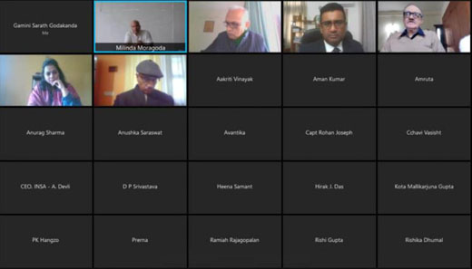 At this virtual event, organized as part of a series of such events to bring the Integrated Country Strategy to the attention of the Delhi-based thinktanks, High Commissioner Moragoda elaborated the importance of developing the thrust areas of petroleum, electricity, ports, tourism, ICT, exports, manufacturing and agriculture to elevate the Sri Lanka- India relationship to a strategic level as envisaged in the Integrated Country Strategy. In this context, he stressed the need to integrate the Trincomalee Oil Tank Farms and the Port of Trincomalee to the overall energy strategy of India with a view to making Trincomalee an energy hub, a move which he observed that would be beneficial to both countries. At the beginning of the event the Integrated Country Strategy was introduced to the participants by Deputy High Commissioner Niluka Kadurugamuwa and the High Commissioner's remarks were followed by a discussion that focused on many aspects of the bilateral relationship, including people to people contacts, connectivity, energy etc. A large number of participants attended the virtual event. Ambassador Dinkar Srivastav, former Ambassador of India to Iran, Lt. General Ravi Sawhney, former Deputy Chief of the Army Staff and Mr. Anil Devli, CEO of the Indian Ship Owners' Association were also among the participants. The session was moderated by the Vivekananda International Foundation's Director Dr. Aravind Gupta. Vivekananda International Foundation, an independent, non-partisan institution that promotes quality research and in-depth studies was founded in 2009 and Mr. Ajit Doval, present National Security Advisor of India was its founder Director. Its present Director Dr. Arvind Gupta was a former Deputy National Security Advisor of India. High Commission of Sri Lanka