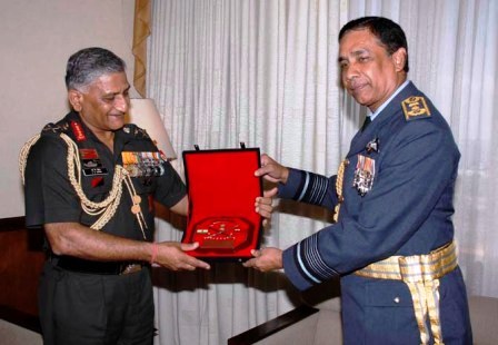 Chief of Indian Army Staff General Vijay Kumar Singh visited the Chief of Defense Staff and Commander of Air Force, Air Chief Marshal Roshan Goonetileke on the afternoon of 6 September at the SLAF Headquarters in |